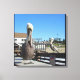 Pelicanos soltando o píer. Redondo Beach, na praia da Califórnia, areia e palmeiras ao fundo. Pelicanos se escondendo, bicos apontados em frente ao peito.