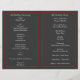 Canvas preta e folheto do programa de casamento de cetim vermelho em zazzle.co.uk/datesdujour. Este folheto do programa de casamento foi projetado para ser dobrado em metade, assim, fazer 4 páginas com os detalhes da cerimônia de casamento e Festa de casamento na dentro das páginas 2 e 3.