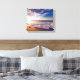 A arte canvas é mostrada com uma impressão fotográfica de uma bela cena de praia oceânica. Imagem do stock