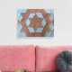 Estofe o bloco no teste padrão marrom e azul do "castelo". O "castelo central" é uma forma marrom da estrela, cercada "pela parede 6 tomada partido" com o "relógio eleva-se" estendendo para fora do meio das paredes.