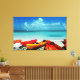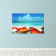 Os caiaques de cor suave aguardam os redemoinhos no dia de médio numa praia silenciosa e isolada nas Bahamas.