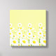 A arte da canvas é mostrada com um impressão gráfico de margaridas brancas bonito em uma cor de fundo amarela. Personalize este item ou comprar como está. Imagem do stock