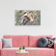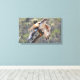 Um invólucro de canvas mostrando um belo Hawk Ferruginoso (Buteo regalis) empoleirado na ponta de um galho morto com um fundo verde deserto deserto desfocado. O gavião está aceso de cima para trás e tem suas asas meio abertas para deixar a brisa legal para baixo. O pássaro tem uma plumagem castanha, cinza e branca com pistas de realces azuis.