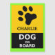 O CÃO A BORDO com o ímã interno conhecido do sinal exterior do cão ajudará seu cão em caso de uma emergência.  Se seu cão é fechado em seu veículo, e tem uma crise de saúde, ou você está envolvido em um acidente, este ímã alertará pessoas que há um animal para dentro na necessidade. É feito para o uso interno ou exterior e poderia significar a diferença entre a vida e a morte para seu melhor amigo.  Personalize-o facilmente e adicione-o para possuir o nome do cão assim que as pessoas podem chamá-lo por seu próprio nome e consolá-lo. Este CÃO A BORDO DO ÍMÃ é uma obrigação para cada proprietário do animal de estimação, faz um grande presente para amantes do animal de estimação, e é parte de minha COLEÇÃO da SEGURANÇA do CÃO em minha loja. Esta coleção inteira veio sobre quando eu vi estatísticas em cães feridos e perdidos e como eu poderia ajudar a fazer coisas melhores e a lhes receber de volta a preferencialmente home do que terminando acima em um abrigo do matar.