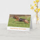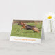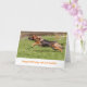 Feliz cartão de aniversário com fotografia de um German shepherd Cachorro Alsaciano correndo alegremente através do capim perseguindo a bola.