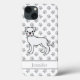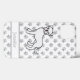 A ilustração original do desenho animado de Destei de um cão da raça Boxer branco casaco. Sob o cão, há também uma área de texto personalizável na cor da cinza para um nome. O fundo tem um padrão de pegadas de cinza.