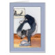 Um cartão vazio para alguma ocasião, caracterizando uma imagem lunática de um cão preto e branco de border collie em uma pose da ioga.