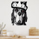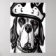Cachorro pirata preto e branco desenhando com olhos castanhos. Esta é uma arte gerada por IA.