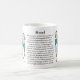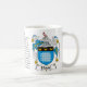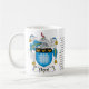 Brasão da família da capa (crista) que inclui a história e o significado do nome da capa em uma caneca cerâmica do café/chá. Cada caneca tem duas imagens de sua brasão (uma em cada lado) e a história e o significado do nome da capa (no meio). A caneca cerâmica é MI