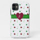 Capa de iPhone de Natal com Monograma - O design tem vários tamanhos de corações vermelhos e verdes, uma fita verde e um grande coração vermelho. Atualize a inicial do monograma no grande coração vermelho para a sua escolha. Boas Festas!