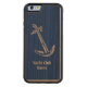 Capa De Madeira Para iPhone, Carved Anchor Yacht Club Nome Modelo Blue Wood