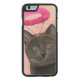 Capa De Madeira Para iPhone, Carved Gato Preto com Anjo Rosa Halo