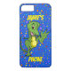 Um T-Rex feliz constitui esta capa de telefone de célula divertida. Personalizável para que você possa adicionar seu próprio texto e alterar a cor de fundo. Faz um presente excelente!