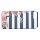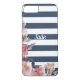 Capas de iphone listrada azul e branca com design de flor. Adicione seu nome para personalizá-lo.