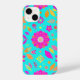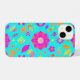 Este padrão floral vibrante estoura com matizes vívidos, cor-de-rosa, laranja e amarelo, colocados contra um fundo de turquesa fresco. Ideal para criar capas de telefone de tendências e na moda, este design colorido apresenta uma mistura divertida de flores e formas geométricas