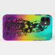 A arte feita sob encomenda de derby do rolo por Casey Maloney, uma menina de derby senta-se sobre uma pilha dos crânios com respingo colorido arco-íris da pintura atrás.