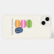Uma capa de telefone amarela leve com uma pilha de Macarons franceses em cores doces pastel, e abaixo, um texto personalizado roxo claro. Uma boa ideia para um chef de pastelaria, um negócio de bolo ou apenas para uma pessoa que ama bolos de cozinhar!