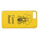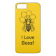 Imagem gráfica da abelha de mel sentada em células de favos de mel. O texto diz "Eu Amo Abelhas!"