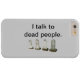 Humor genealógico - "Eu falo com pessoas mortos" é o texto que acompanha quatro lápides. O fundo é cinza)