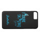 capa de telefone personalizada turquesa para patinar figura - um belo presente de patinação para ser cercado por uma paixão!Cores: gelo azul turquesa sobre fundo preto.Design: "Garota patinadora" + silhuetas de uma garota patinadora em vez de letras + personalize com o nome do skater.