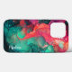 Uma capa de telefone de design de tinta magenta e de álcool verde. A capa de telefone é personalizável; você pode personalizá-la com seu próprio nome, ou qualquer texto que você preferir.
