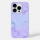 Apresenta um design de padrão de mármore, em tons roxos.