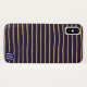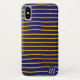 Apresenta um padrão de stripe em folha simulada em ouro, sobre fundo de marinho. Personalizar com iniciais.