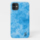 Possui uma aquarela vibrante aleatória e turquesa aquosa e um design de plástico de tinta em um fundo de turquesa leve. Personalize com uma inicial.