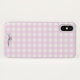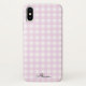 Apresenta um design de gingham cor-de-rosa pastel. Personalize com um nome.