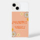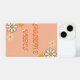 Capa de telefone no estilo Groovy que diz "vibrações positivas". Tem flores com estilo de fonte divertido.