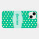 A polca branca modelou capas de iphone em verde, branca e amarela. Personalize este item com o seu nome. Este exemplo diz: Yaminta. Este padrão original foi projetado por Sarah Trett. www.sarahtrett.com