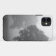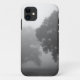 Árvores negras e brancas calmas e serenas. Um nevoeiro no campo de golfe.