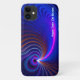 A ciência nos diz que o espaço é curvo. E assim é. Uma imagem fractal de várias cores de loops concêntricos sobreposta a um fundo estrelado. Adicione seu próprio texto.