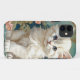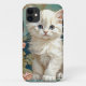 capas de iphone com um gato branco no estilo de Alphonse Mucha! Este gatinho liso e de olhos azuis posou com flores cor-de-rosa e cobertores azuis. Um presente fabuloso para amantes de gatos e colecionadores de Art Nouveau!