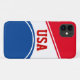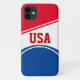 Este caso do Apple iPhone 11 é mostrado em um design vermelho, branco e azul com texto dos EUA. Personalize este item ou comprar como está.