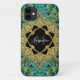 Personalizado com seu monograma personalizado com seu sobrenome monograma inicial e seu primeiro nome. Esta é uma mistura de trabalho de arte de safra e uma fotografia original de penas de pavão desenhada graficamente por Audrey Jeanne Roberts e foi desenhada para uma coleção de acessórios de moda moderna e contemporânea. Existe um conjunto completo de produtos e pode ser criado em várias cores. Muito glamouroso, brilho dourado, parece um quadro do Art Deco com ornamentos decorativos de impressoras antigas, espirais, floreados e gravuras barrocas. Uma maravilhosa mistura de estilo antigo e design gráfico moderno e ousado. NOTA: Esta é uma imagem impressa plana, não há elementos de brilho metálico-dourado. PALETA DE CORES: azul-marinho, ouro, azul-aqua, azul-real, verde e roxo