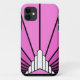 Um padrão solar clássico de deco de arte criado em rosa. Um padrão icônico da ascensão solar por trás de um edifício estilizado em forma de arte. Um design simples, mas elegante, verdadeiro à era.