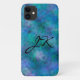 Capa de telefone digital de abstrato de arte azul e preto monograma.