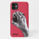 Capas de iphone gótica personalizada apresentando uma ilustração digital assustadora de uma mão esfaqueada apertando uma bola pontiaguda, sofrendo dor de seus espinhos afiados cortando através da pele. Este malvado trabalho de arte de terror tem um esquema de cores em cinzas, vermelho e preto, inspirado pela arte gótica e um nome personalizável.