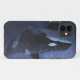 Uma orca masculina solitária desliza silenciosamente através das águas do Alasca frias nesta pintura por Karen Whitworth.