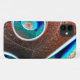 A arte digital abstrato assemelha-se a uma superfície brilhante 3D de cobre martelado com buracos perfurados até um plano azul de azure de existência... Ou algo assim. Deixe sua mente vagar...