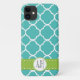 Capa Para iPhone 11 Azul Quatrefoil, Trellis marroquina, Monograma