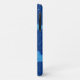 Capa de telefone em uma mídia mista de ilustração digital de um balão de ar quente, em padrões de azul de cobalto e aqua, contra um céu azul profundo, com estrelas e nuvens de padrão mármore