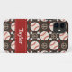 Este teste padrão bonito e desportivo do basebol do amor da paz pode ser personalizado com seu nome no vermelho IMPRESSO e no design costurado branco do olhar da fita. Design destes basebol, coração, margarida e símbolo e sinal de paz no marrom escuro, o creme, o branco, o ouro e o vermelho fazem um grande presente para um fã de basebol, um jarro, uma massa, um árbitro, um treinador, uma mamã da esposa do treinador ou do basebol ou umas meninas ou um jogador de equipa de beisebol das mulheres. Trabalhos de arte e © Chrissy H. Estúdio do design, LLC. Todos os direitos reservados.