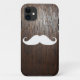 Capa Para iPhone 11 Bigode branco engraçado no fundo da madeira de