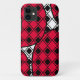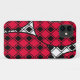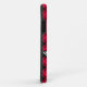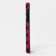 Esta capa de telefone tem um design moderno do século médio de diamantes negros sólidos em dentro de diamante preto com bolhas cor-de-rosa sob eles, todos em um campo de branco.