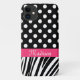 Capa Para iPhone 11 Bolinhas Negras Zebra Stripe Nome Rosa