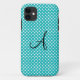 Capa Para iPhone 11 Branco do monograma e bolinhas de turquesa
