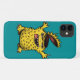 Capas de iphone maluca de monstro de galinha com uma ilustração de personagem desenhada em tinta digital em cores amarela e azul verdes.