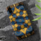 Este design de flor de mandala funky apresenta amarelo, azul e laranja no estilo de desenho animado. Visuais geométricos triplos para o hippie moderno ou amante de cores vibrantes!
